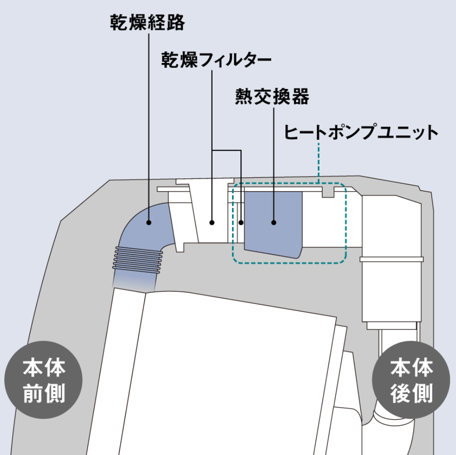 ヒートポンプユニットが上部にある&乾燥経路が短い、のメリットとは?