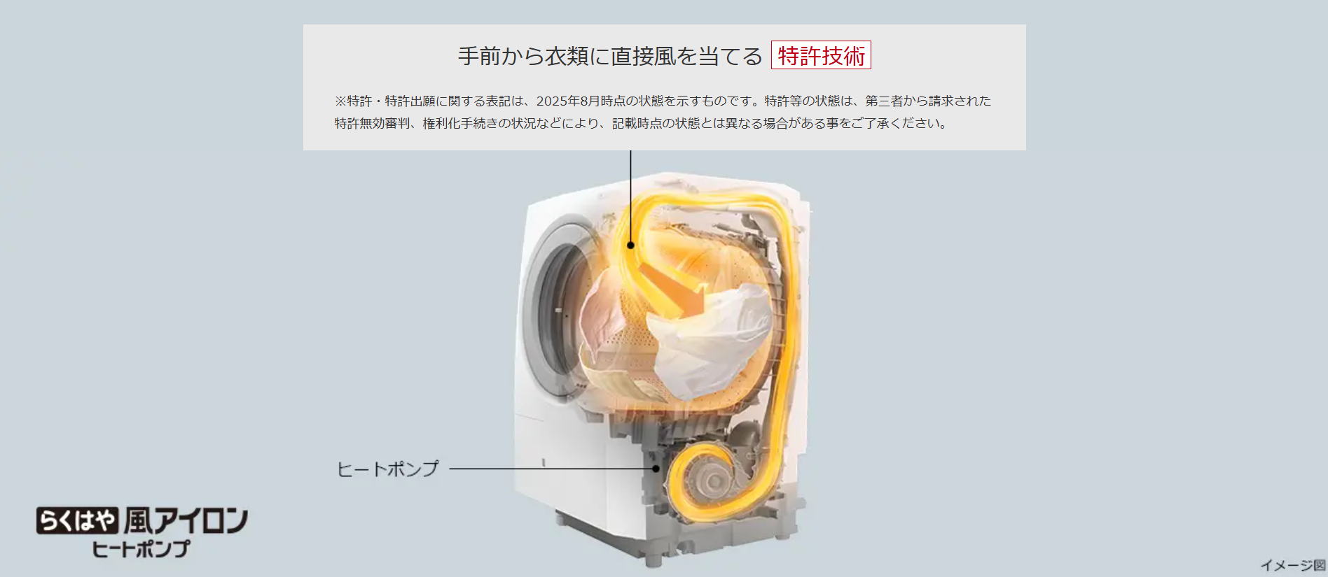 これはパナソニックのヒートポンプユニットから乾燥経路、洗濯槽にかけてのイメージ図です。